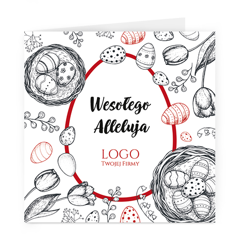 Logo i życzenia są drukowane bezpośrednio na kartce.