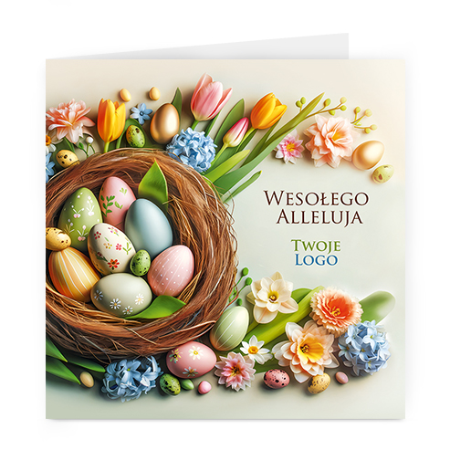 Logo i życzenia są drukowane bezpośrednio na kartce.
