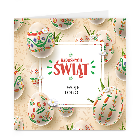 Logo i życzenia są drukowane bezpośrednio na kartce.