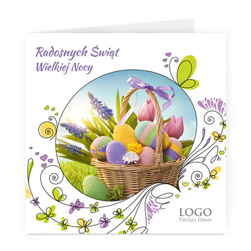 Logo i życzenia są drukowane bezpośrednio na kartce.