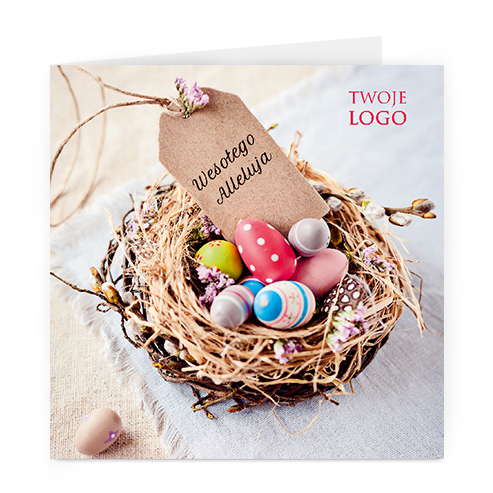 Logo i życzenia są drukowane bezpośrednio na kartce.