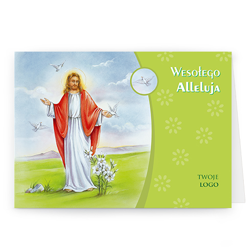 Logo i życzenia są drukowane bezpośrednio na kartce.