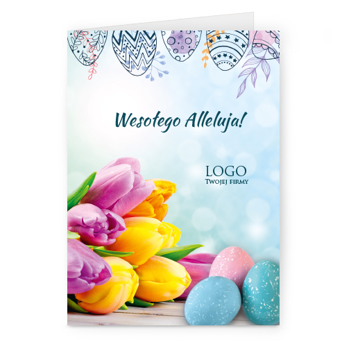 wzór: pion_61 SPECYFIKACJA: Logo i życzenia są drukowane bezpośrednio na kartce. Do każdej kartki dołączona jest biała koperta C6. Istnieje możliwość zmiany haseł na froncie na dowolnie podaną wersję językową. |