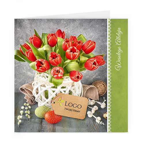 Logo i życzenia są drukowane bezpośrednio na kartce.