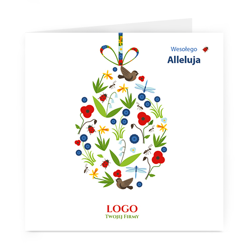 Logo i życzenia są drukowane bezpośrednio na kartce.