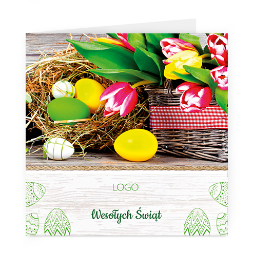Logo i życzenia są drukowane bezpośrednio na kartce.