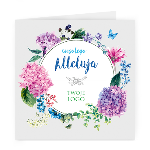 Istnieje możliwość zmiany haseł na froncie na dowolnie podaną wersję językową lub nadrukowanie własnego loga również na froncie kartki.
