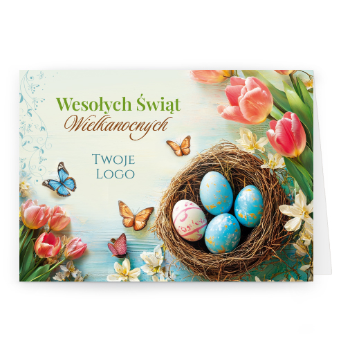 Logo i życzenia są drukowane bezpośrednio na kartce.