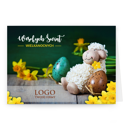 Logo i życzenia są drukowane bezpośrednio na kartce.