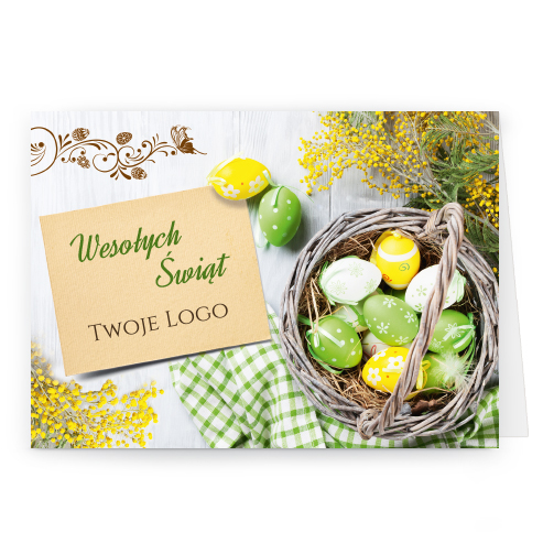 wzór: poziom_80 SPECYFIKACJA: Logo i życzenia są drukowane bezpośrednio na kartce. Do każdej kartki dołączona jest biała koperta C6. Istnieje możliwość zmiany haseł na froncie na dowolnie podaną wersję językową. |