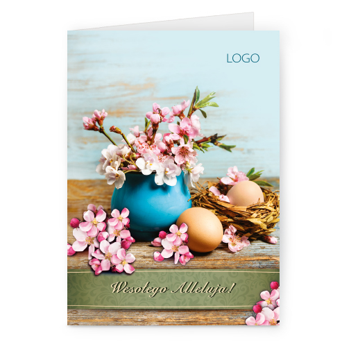 Logo i życzenia są drukowane bezpośrednio na kartce.