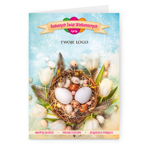 Logo i życzenia są drukowane bezpośrednio na kartce.